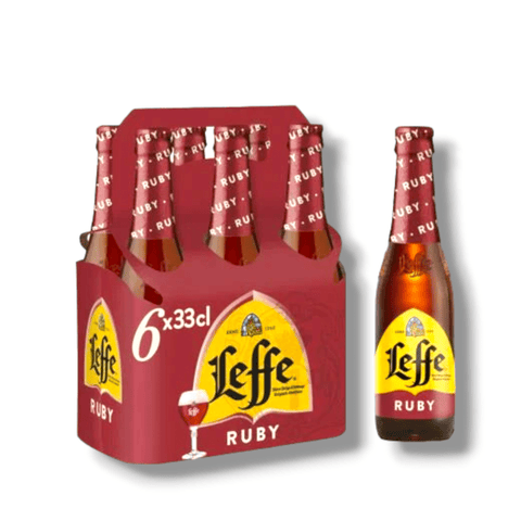 Leffe Ruby ist ein besonderes belgisches Bier mit fruchtigem Twist – mild, süßlich und leicht würzig. Die rubinrote Farbe macht es zum Hingucker im Glas, während Aromen von Himbeere, Holunderbeere und Gewürzen das Geschmackserlebnis prägen.